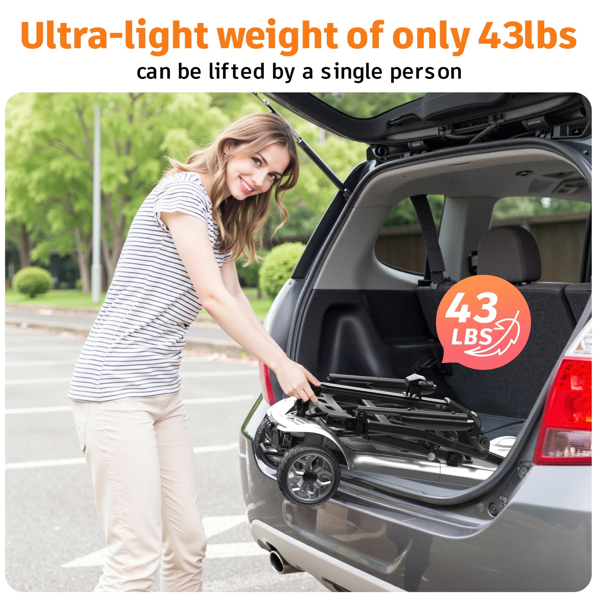 EAGLOG Light Weight 4 Wheels Mobility Scooter for Seniors, Electric Folding Wheelchair Device for Travel, Silver